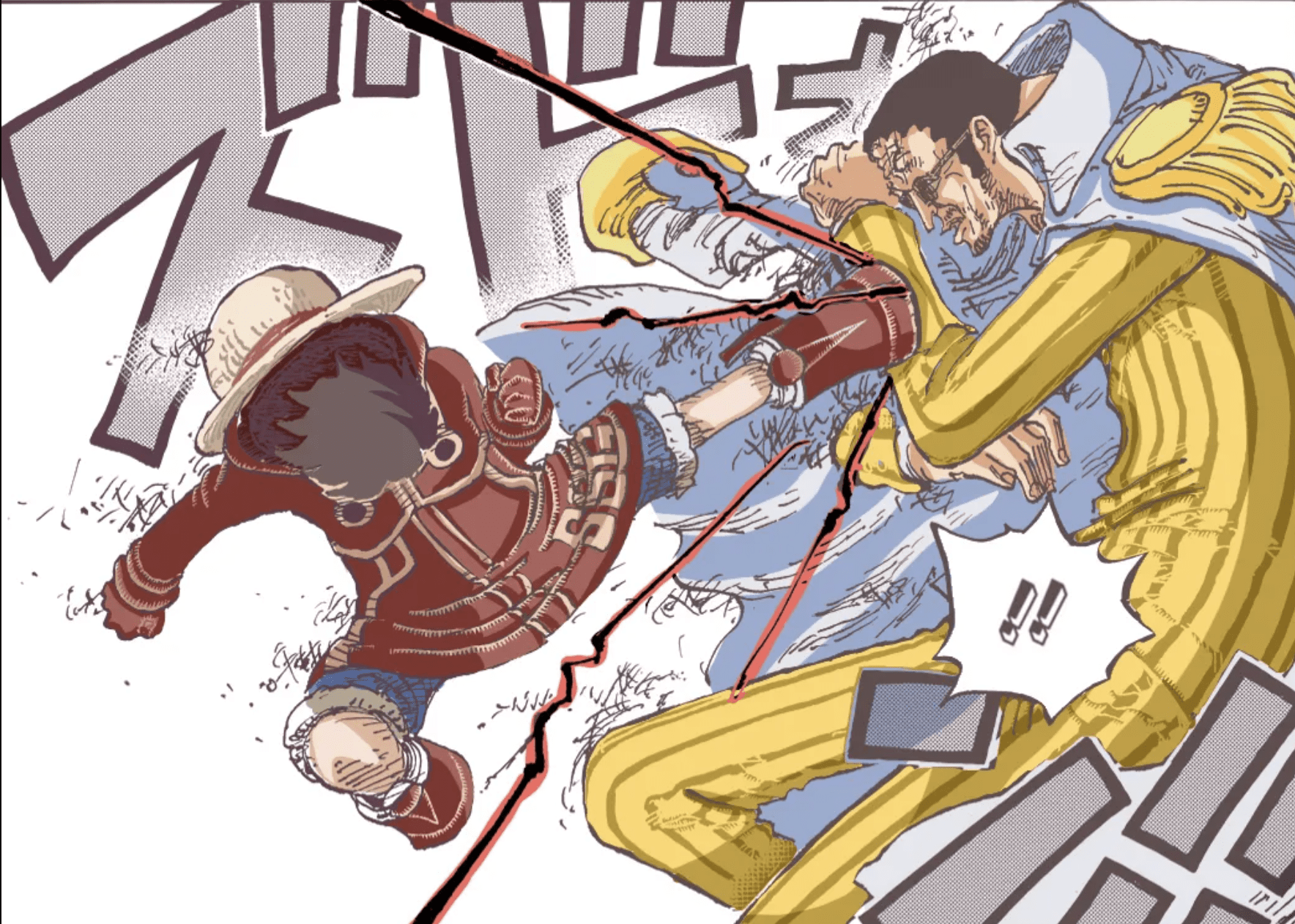 The chapter opens with a surprise attack by sea monsters on the Navy ships, but the mysterious Saturn doesn’t appear as expected. The damage caused by this attack underlines the vulnerability of the Marine forces and accentuates the danger of EggHead Island. As the vice-admirals engage in fierce fighting, Sat comes face to face with Kizaru, the admiral.